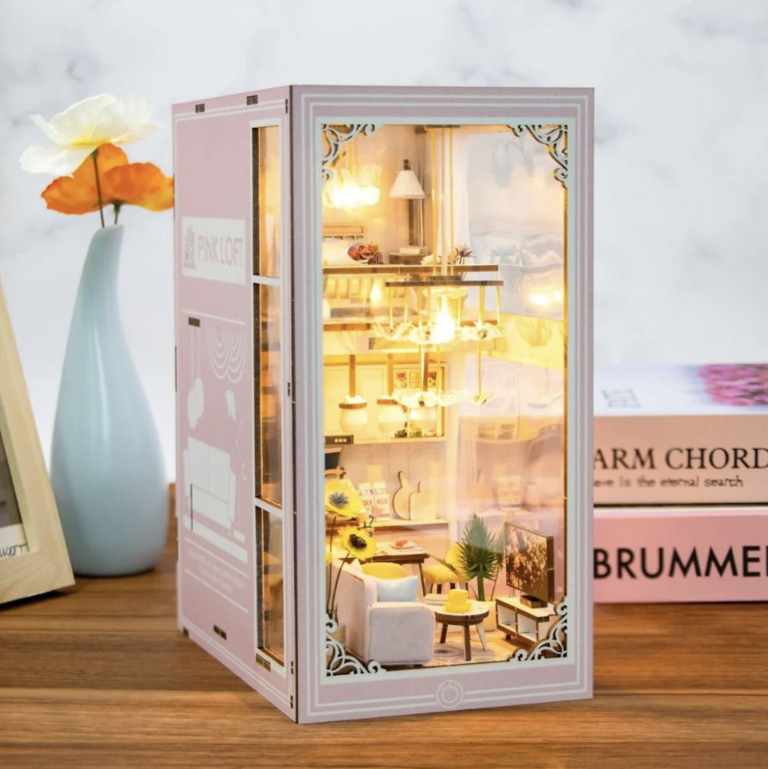 Jedes Mal wenn ich die im Laden sehe, dann stehe ich wie ein kleines Mädchen davor. Diese filigrane Einrichtung und dann im Wohncontext lässt mich immer wieder staunen. Kennt ihr Book Nooks, mein Favorit ist natürlich das „Rosa Loft“. Diese 3D-Miniwelten bauen sich wie Puzzles auf – man kann zwischendurch bauen und immer wenn man Lust hat. Ideal als Einstieg in 3D-Crafts, skalierbar für Fortgeschrittene und am Ende könnt ihr es sogar als Buchstütze ins Regal stellen, falls ihr eins habt. Ich finde das ist auch eine prima Geschenkidee ab 14 Jahren – es gibt viele verschiedene Looks und auch die Kids können sich damit gut beschäftigen und lernen ganz fein zu arbeiten.