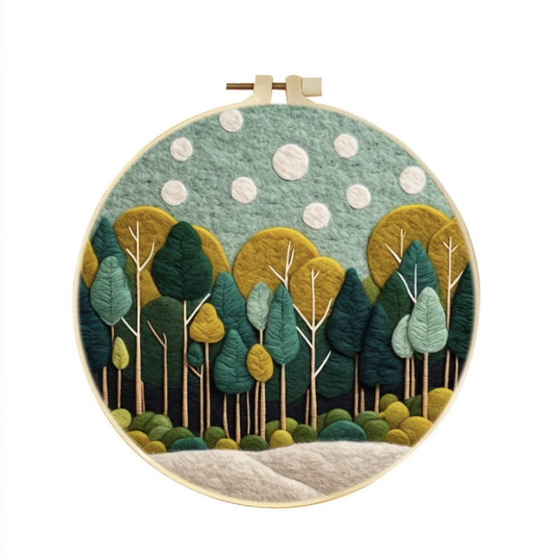 Vom Gefühl her erinnert mich das an das Nadelfilz-Set „Dichter Wald“. Ebenfalls filzig-weich, ruhig in der Farbwelt, waldig, reduziert. Beide Techniken haben etwas Entspannendes und führen am Ende zu handgefertigten Unikaten, die nicht nach Bastelstunde aussehen, sondern nach bewusst gestaltetem Zuhause.